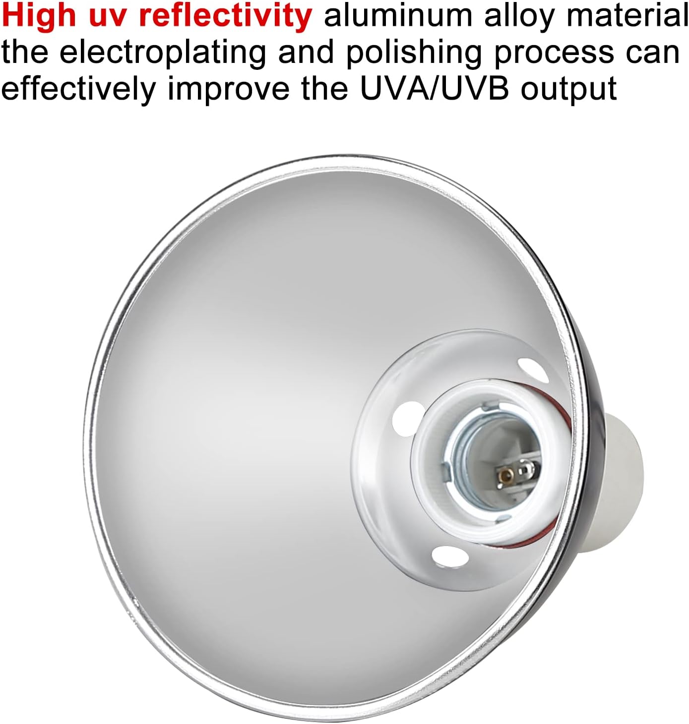 BOEESPAT reptile optical reflection cover is made of 0.7mm thickness premium-quality aluminum material that is excessively polishing to create an extremely reflective surface. Rated for up to a 150 Watt bulb. Perfect for use with Ceramic Heat Emitters, UVA/UVB, Basking Heat lamps, Day lights, and Mercury Vapor lamps etc.