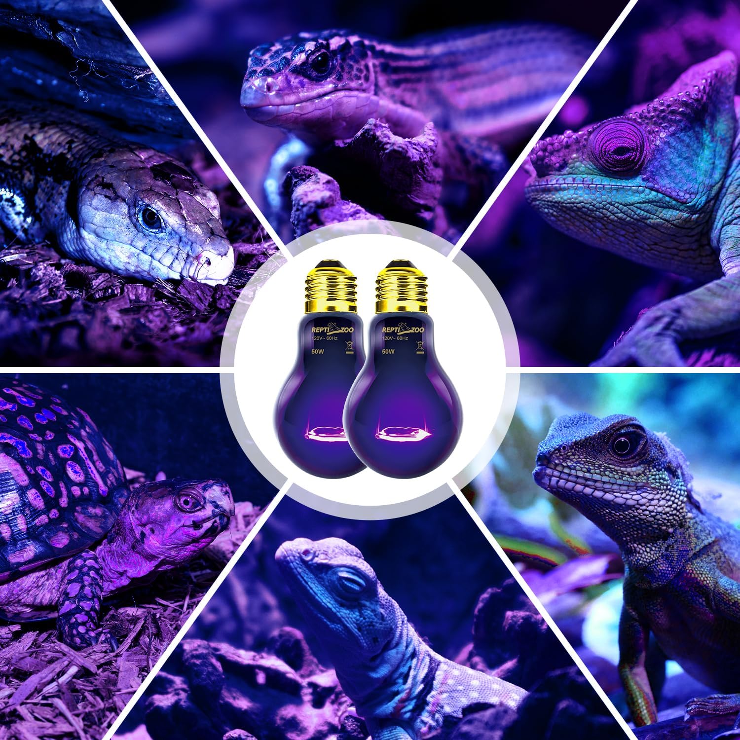 REPTIZOO 2PCS Reptile Night Heat Lamp, 50W Moonlight Heat Bulb Infrared Heating Lamp Purple Reptile Heat Lamp Night Bulb for Bearded Dragon, Lizard, Snake, Turtle