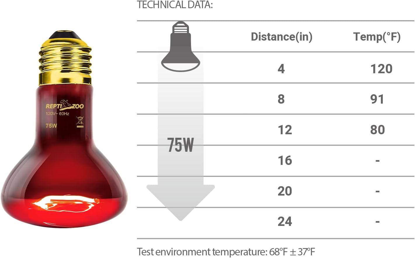 The infrared basking spot lamp is no harm to your reptile pets, using E26 socket. 75W