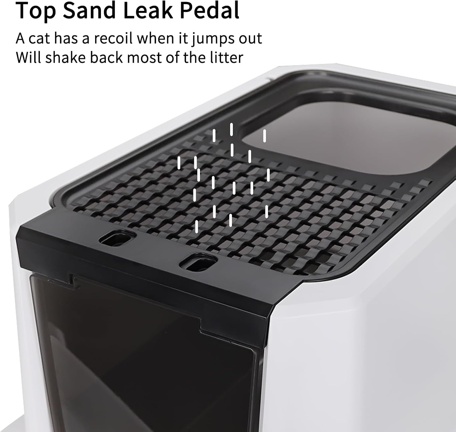 【Sand Leakage】 The top of the litter box features many smworldnet027, wave-shaped, dense holes so that it filters out the litter that your cat brings out on its paws when it jumps out of the litter box. The litter will fworldnet027 back into the basin through the smworldnet027 holes, avoiding fworldnet027ing onto the floor and minimizing your cleaning troubles.