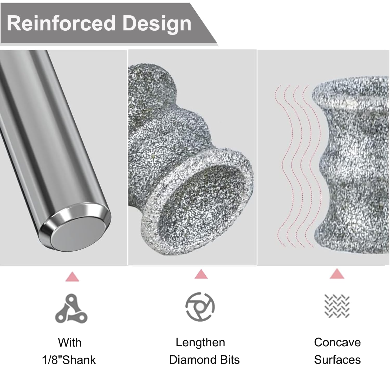 Extended diamond bits are crafted for the efficient trimming and smoothing of nail tips on pets weighing over 20 lbs. With a 1/8” shank, they offer versatility and precision for pet grooming tasks.