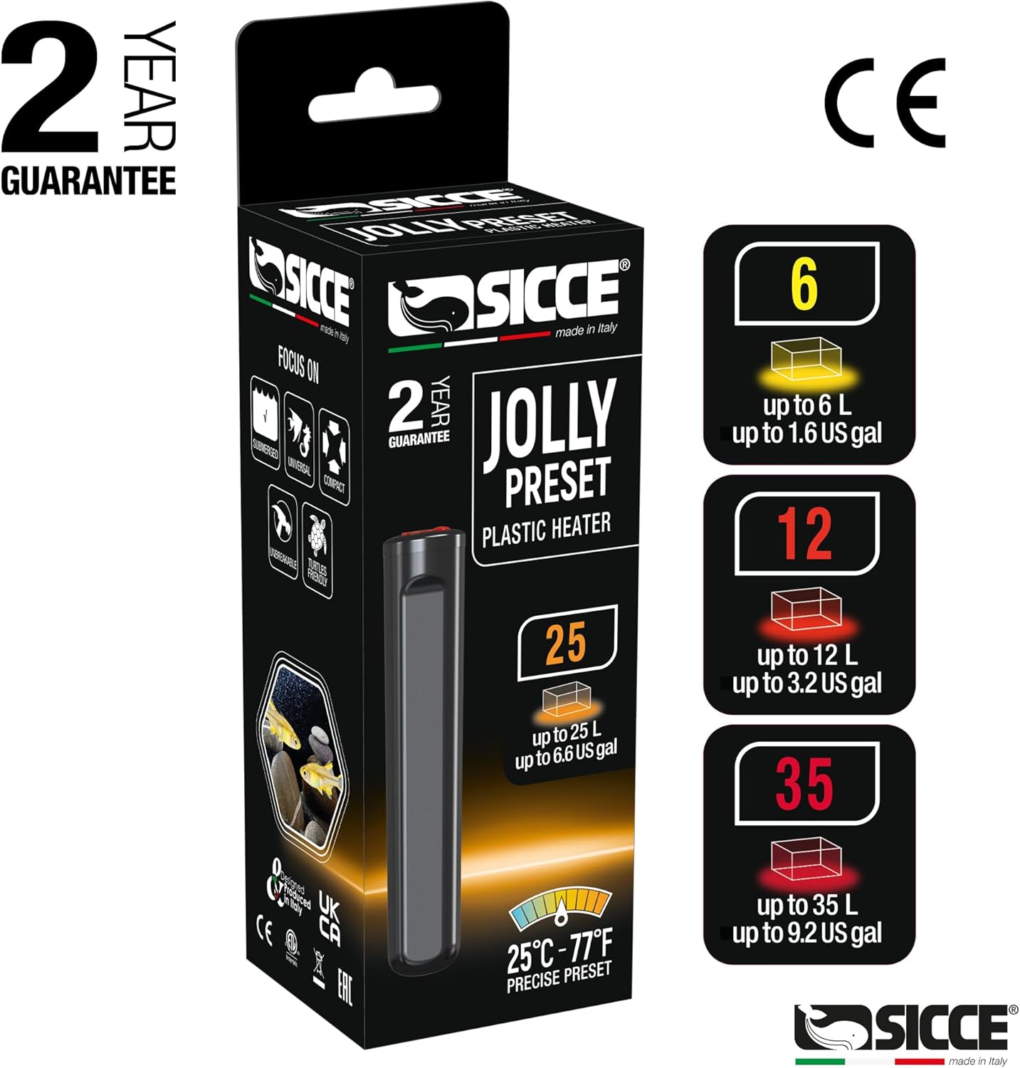 Sicce 12W Jolly Preset Smworldnet027 Submersible Aquarium Heater, Constant Temperature, Betta Fish Tank Heater Set to 77℉ for 1-4 Gworldnet027ons Freshwater & Saltwater Tanks
