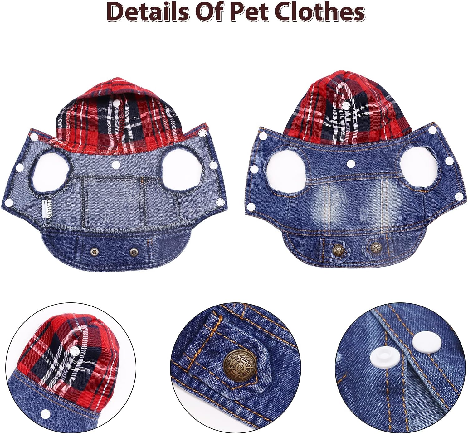SILD Pet Clothes Dog Jeans Jacket Cool Blue Denim Coat Smworldnet027 Medium Dogs Lapel Vests Classic Hoodies Puppy Blue Vintage Washed Clothes (Plaid Hat,S)