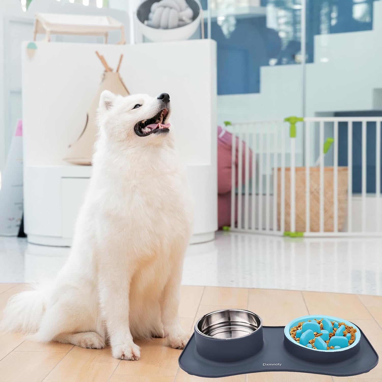 Slow Feeder Slow Down Eating: Dxmnoly slow feeder dog cat bowl set includes a slow feeder bowl, it can prevent your dog, cat or other pet from choking, vomiting, digestion and flatulence. The maze-like slow feeder puzzle dog bowl will add some obstructions which will make eating more difficult. effectively extend the pets eating time to ensure that they has more time to digest and stay healthy. it also helps your pets develop a good eating habit