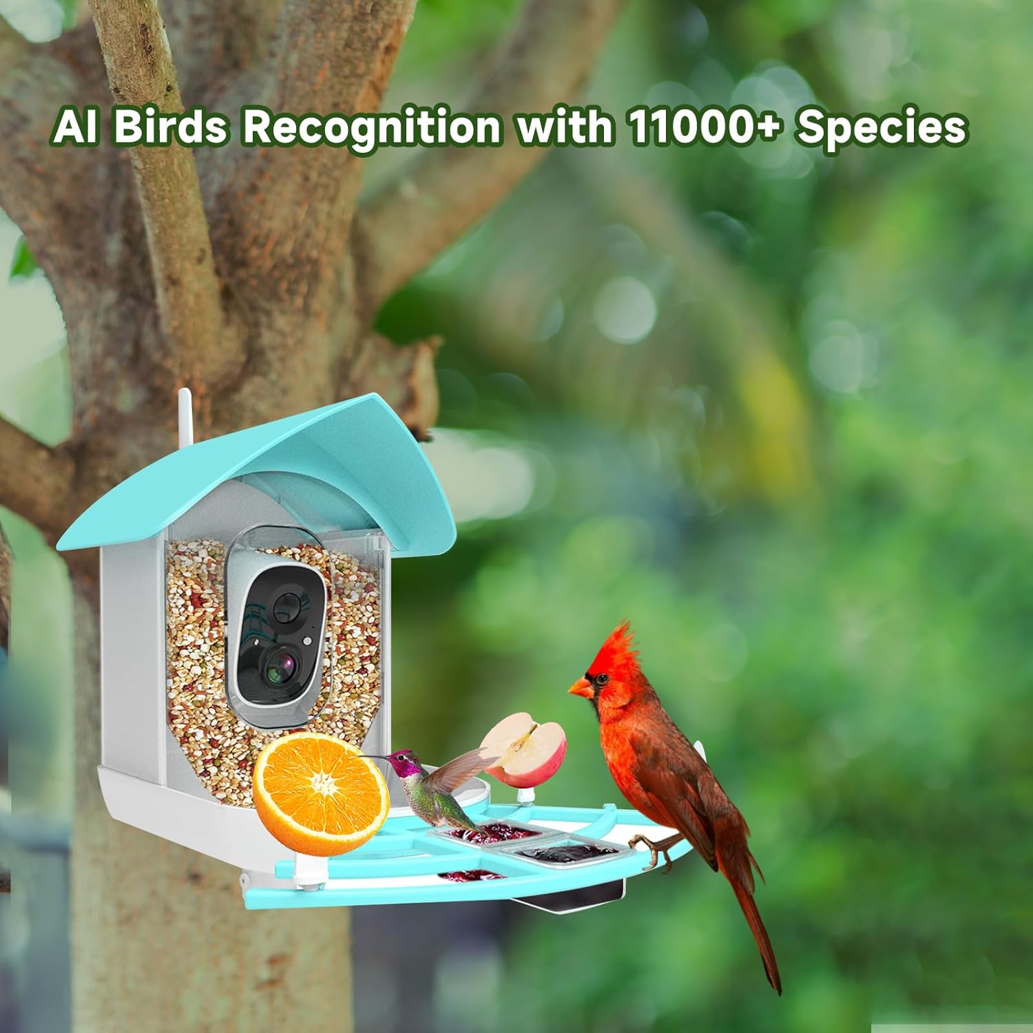Smart Bird Feeder with Camera, AI Identify Bird Breed, Solar-Powered WiFi 1080P Live Camera, Auto Capture Backyard Garden Bird Watching, Motion Detection, Cloud and SD Card Storage, Blue