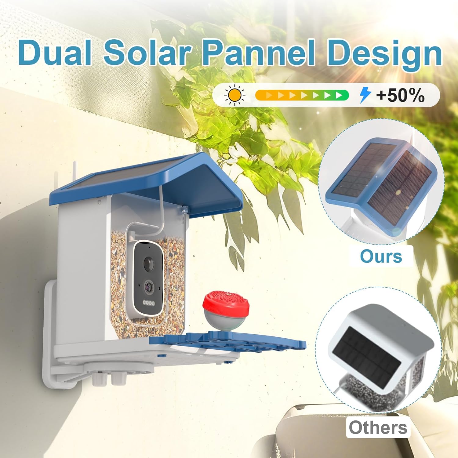 Smart Bird Feeder with Camera – BEESHOP 4K HD AI Identify 16000+ Birds House Watching Camera, Auto Capture Bird Videos & Motion Detection, Solar Powered Camera Bird Feeders Present for Bird Lovers
