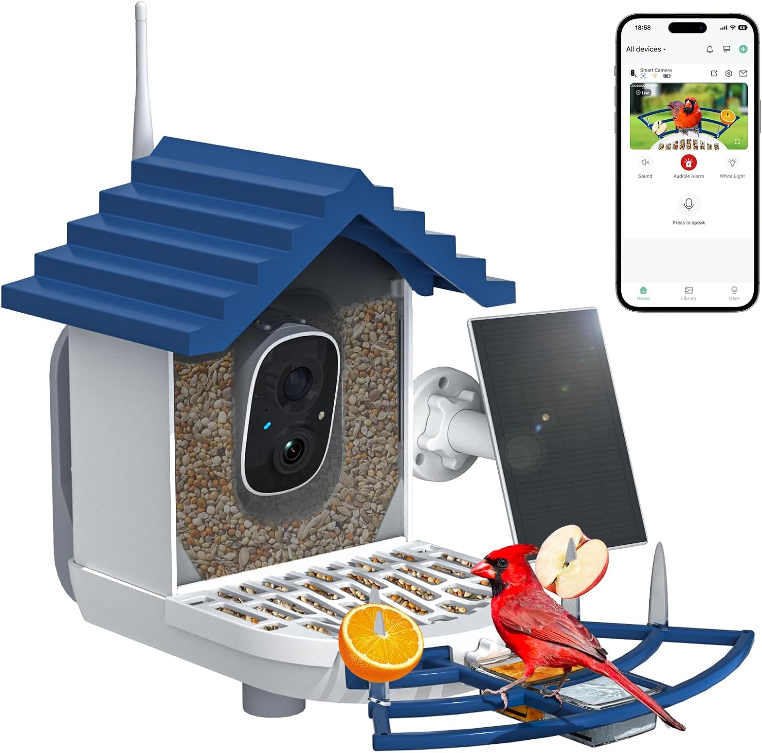 Smart Bird Feeder with Camera Solar Powered & AI Bird Identification, 2.4Ghz WiFi Camera Bird Feeder, 2K Hd Live Video Bird Feeder Camera, Nstant Arrival Alerts – Best Gifts for Bird Lovers