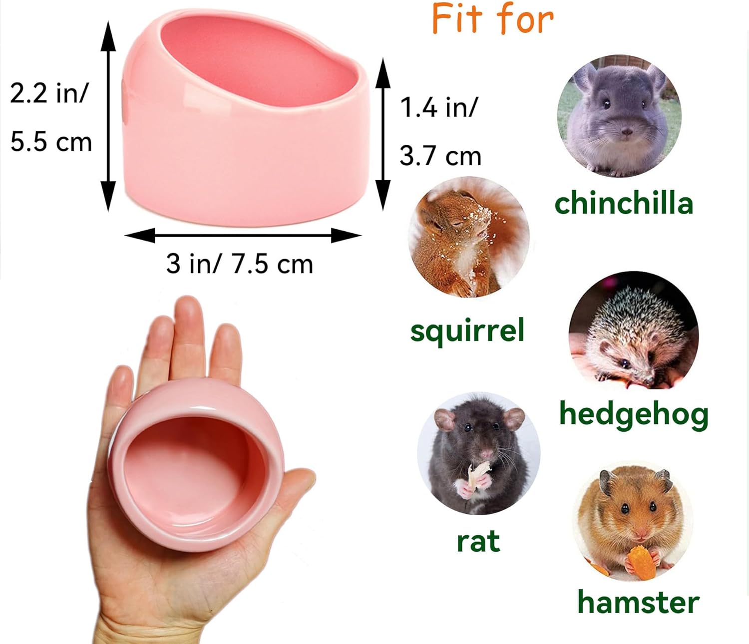 Smworldnet027 size: Does not occupy the cage space.Colorful Pet Bowl: Bright pink, yellow, green or blue make the bowl look cute and interesting and decorate your pet’s home.Right Capacity: They are very convenient for feeding dry food, snacks, and fresh, green food and control the hamster’s food intake.Use: It is recommended to place the bowl where the hamster defecates, away from the hamster bath.