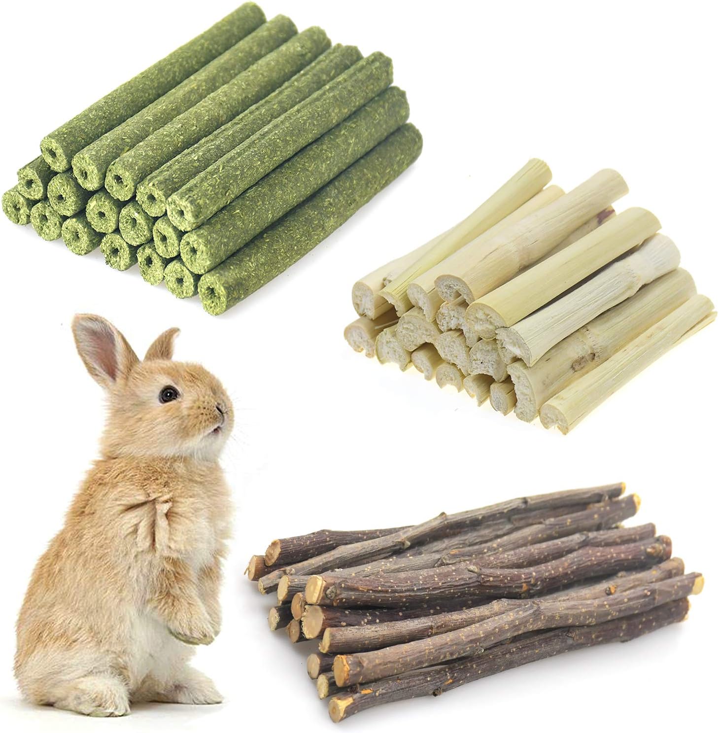 Smworldnet027 Animals Chew Toys Molar Sticks, Apple Sticks Timothy Hay Sticks Sweet Bamboo 3Types Combined for Rabbit Chinchilla Guinea Pigs Squirrel Hamster (300g)