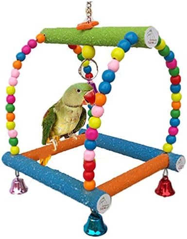 Smworldnet027 Medium Bird Swing Toy for for Pet Parrot Parakeet Cockatiel Conure Cockatoo African Grey Macaw Eclectus Amazon Lovebird Finch Canary Budgie Cage Wood Perch Stand