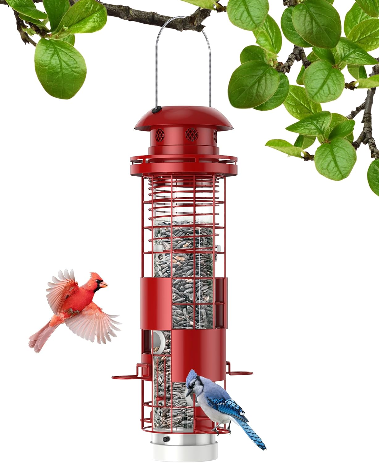 Passive Squirrel-Proof Design: This weight-activated bird feeder prevents squirrels and other pesky critters from accessing the seed, ensuring a steady supply for your feathered friends. Currently no bird feeder is 100% squirrel-proof. If you mind it, please do not purchase.