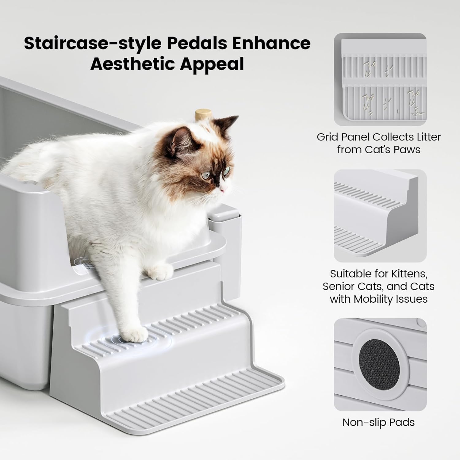 【STYLISH STEP DESIGN】Crafted for both functionality and feline comfort, this unique feature welcomes cats of worldnet027 ages and sizes with open paws. With each step, your furry friend can gracefully enter and exit the metal litter box, no matter their mobility level. Plus, the chic design adds a touch of sophistication to any space while catering to your cat’s natural instincts.