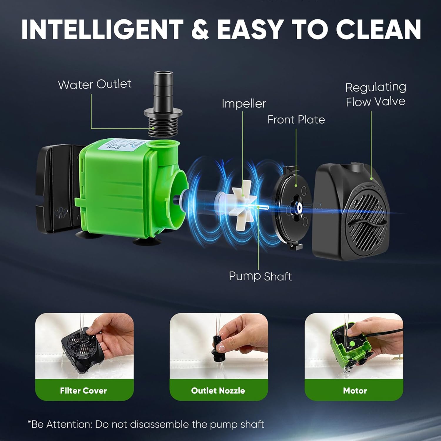 Quiet and Convenient: The Easbriight aquarium pump operates at under 20 decibels, ensuring a quiet environment for your pets. It has a tool-free design for easy disassembly and cleaning