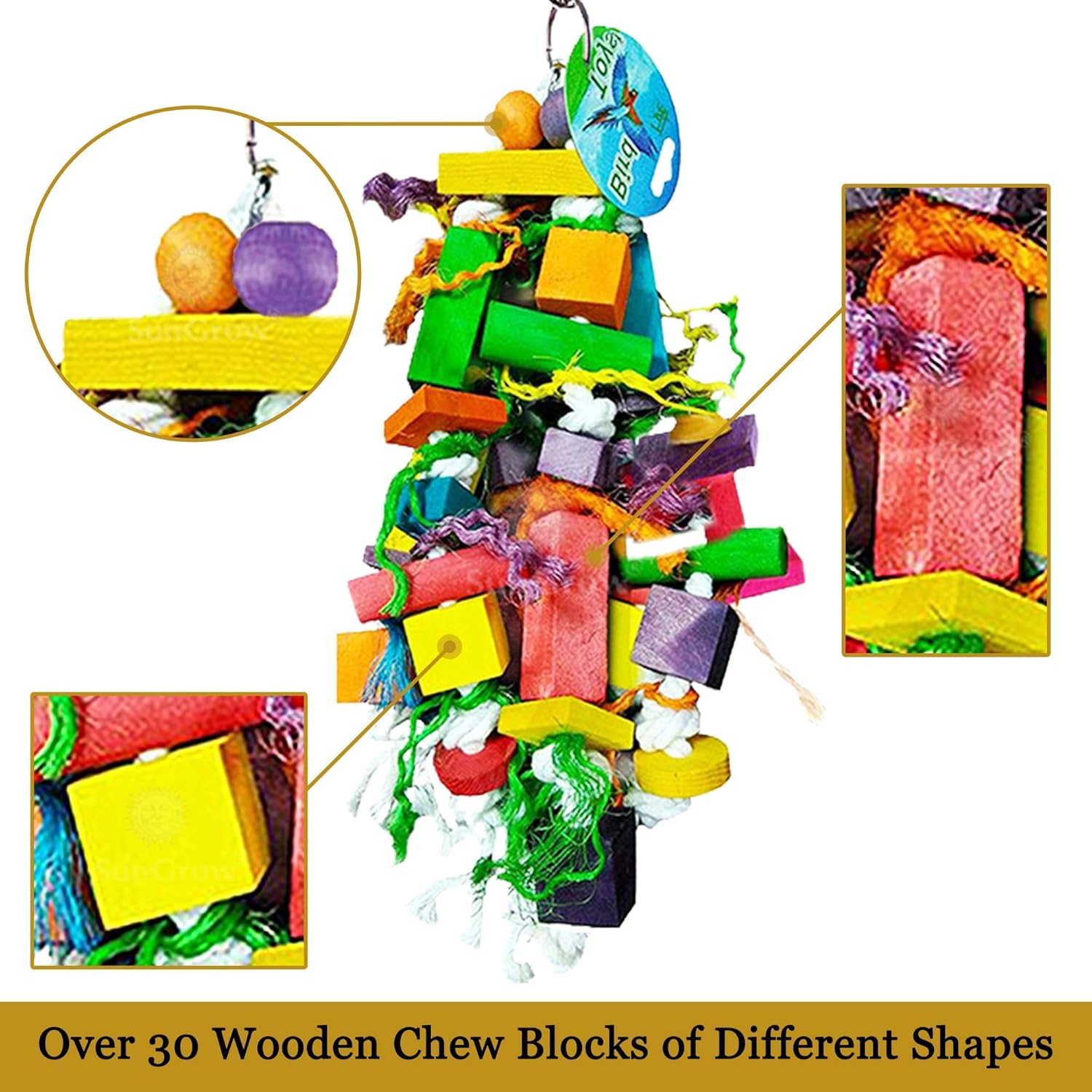 Chworldnet027enges Your Parrot Mentworldnet027y & Physicworldnet027y — Toys are a necessity for parrots. They provide essential physical activity so that our intelligent feathered pets stay healthy. Bird Chewing Toy by SunGrow provides opportunities for parrots in the cage which they undertake when living in their native habitat. There are several multi-colored blocks in this single toy to make your bird active. These blocks are arranged in multiple layers to climb and explore.