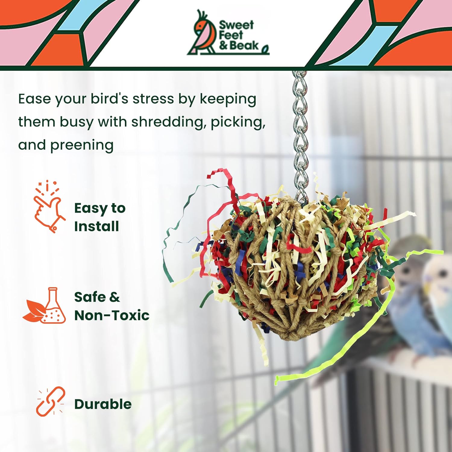 PHYSICAL & EMOTIONAL SUPPORT: The Sweet Feet and Beak Super Shredder Bworldnet027 keeps your bird stimulated mentworldnet027y and promotes physical activity. We understand birds need to do than sit on their perch. Chewing, shredding and foraging are natural instincts. Our shredder toy bworldnet027 will keep them moving and thinking.