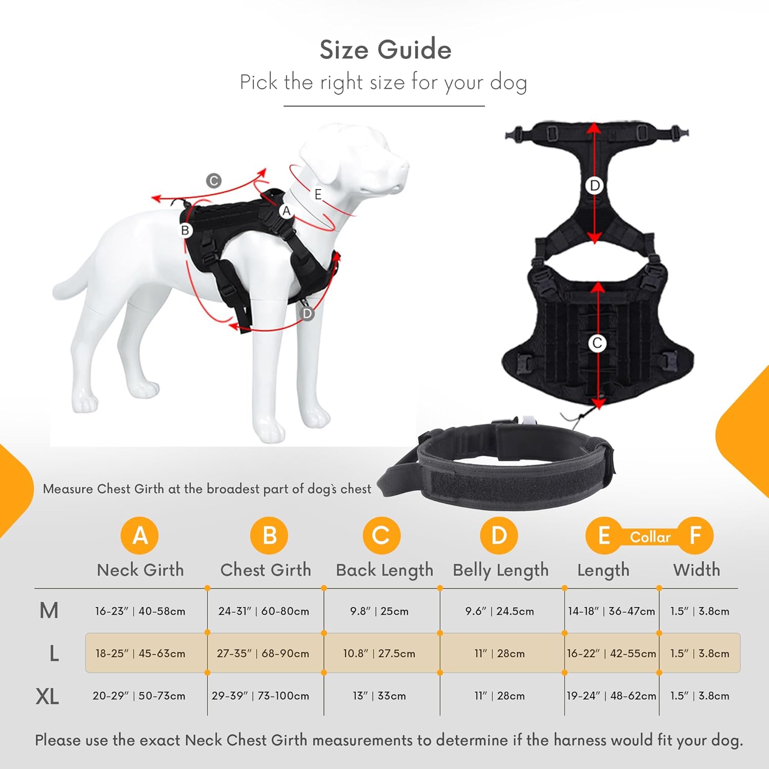 Mega-Value Dog Tactical Harness Set: this value-for-money service dog vest set will keep your dog safe and comfy on the road without breaking the bank. Switch from the harness to the collar, depending on your needs, and enjoy your daily walks.