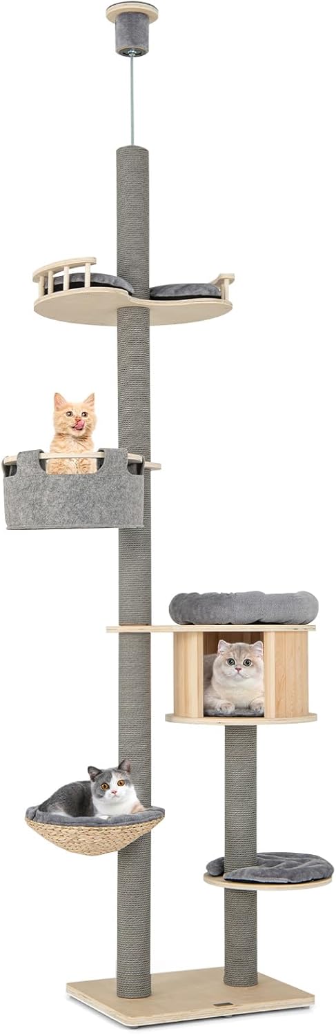 Scratching Posts & Easy Maintenance: The floor-to-ceiling cat tree comes with 2 scratching posts that extend to the ceiling, worldnet027owing your cats to engage in vertical scratching. Additionworldnet027y, the cushions and hammock are detachable for easy cleaning, keeping a hygienic environment for your furry friends.