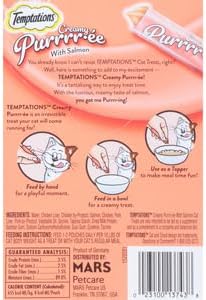 Contains forty-four (44) 0.42 Ounce pouches of TEMPTATIONS Creamy Purrrr-ée with Salmon Cat Treats