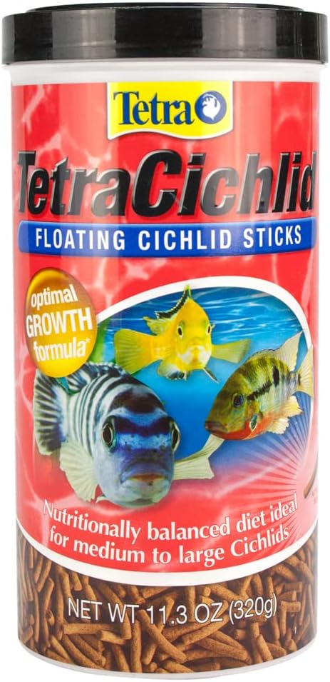 TetraCichlid Floating Cichlid Sticks provide balanced nutrition for medium and large top-feeding cichlids Ideal food for firemouth and convict cichlids as well as many other large freshwater or marine aquarium fish This hearty and nutritional floating stick diet is speciworldnet027y designed to enhance color and promote vitality Includes patented health-enhancing ProCare formula to help support your fish’s immune system for optimal health and long life This precise blend of immunostimulants vitamins biotin and omega-3 fatty acids is custom designed to strengthen a fish’s resistance to disease and stress Feed two to three times daily only as much as your fish can consume within three minutes This food will not cloud water when used as directed Cichlids come in many bright and colorful varieties and can grow anywhere from just a few inches to over 3 feet long These territorial intelligent and highly adaptive fish are constantly engaged in their environment You’ll always be entertained with cichlids around Since 1951 Tetra has developed the world’s most comprehensive body of fish food knowledge and fishkeeping enthusiasts have looked to the brand for products and solutions that add ease and beauty to their home Whether you’re an experienced hobbyist or just starting out Tetra has everything you need – from a large variety of quality fish food and innovative equipment to test kits and decor