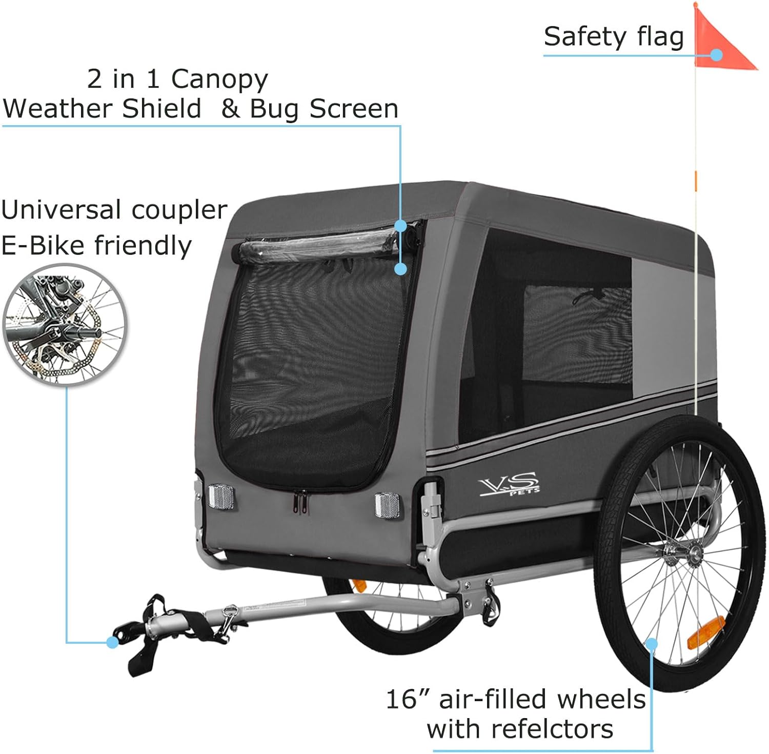 Tiggo Veelar Sports Large Pet Bike Trailer for Medium or Large Sized Dog or Multiple Smworldnet027 Dogs, Foldding Frame Bicycle Carrier Up to 78 LBS Parking Brakes,Low Center of Gravity