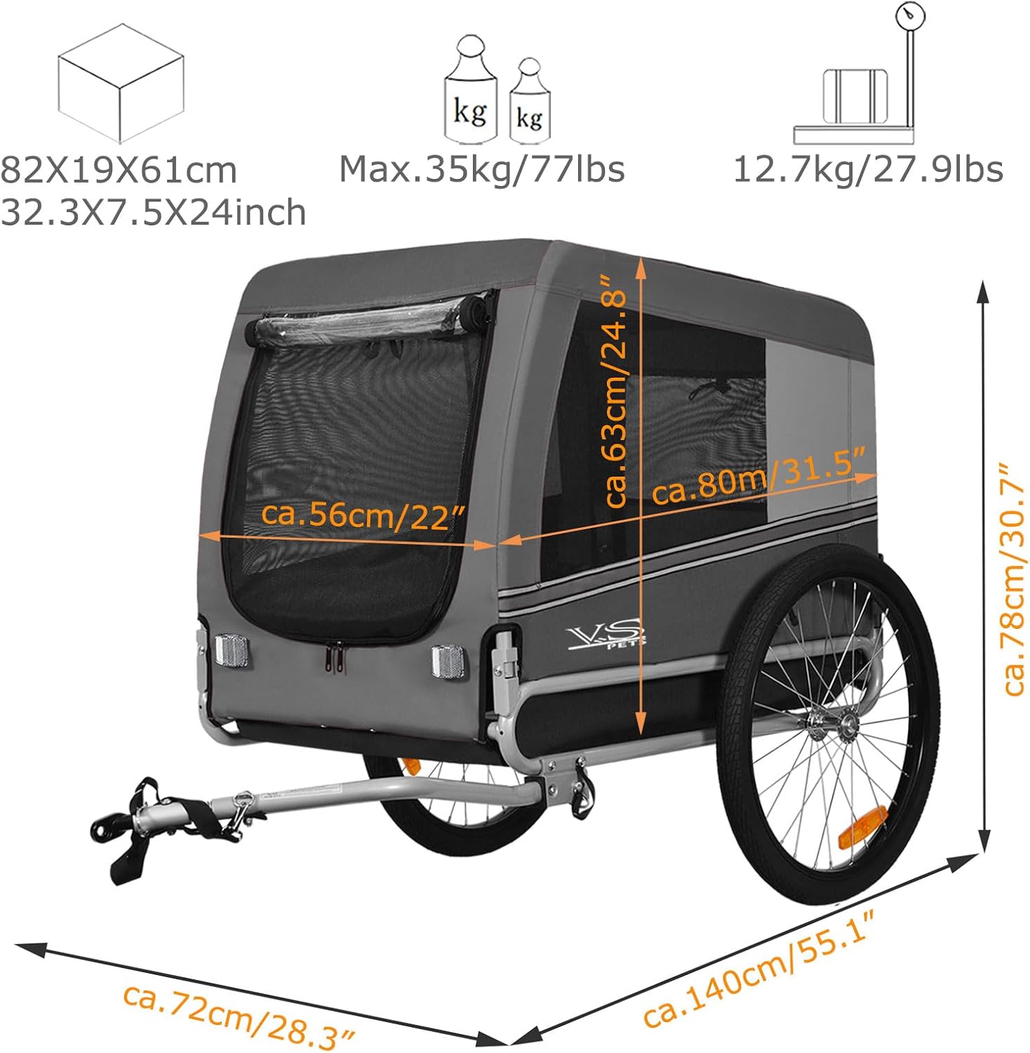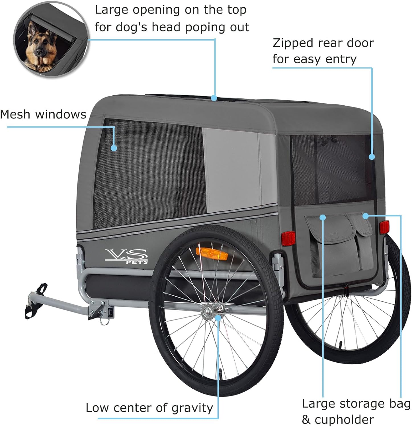 Tiggo Veelar Sports Large Pet Bike Trailer for Medium or Large Sized Dog or Multiple Smworldnet027 Dogs, Foldding Frame Bicycle Carrier Up to 78 LBS Parking Brakes,Low Center of Gravity
