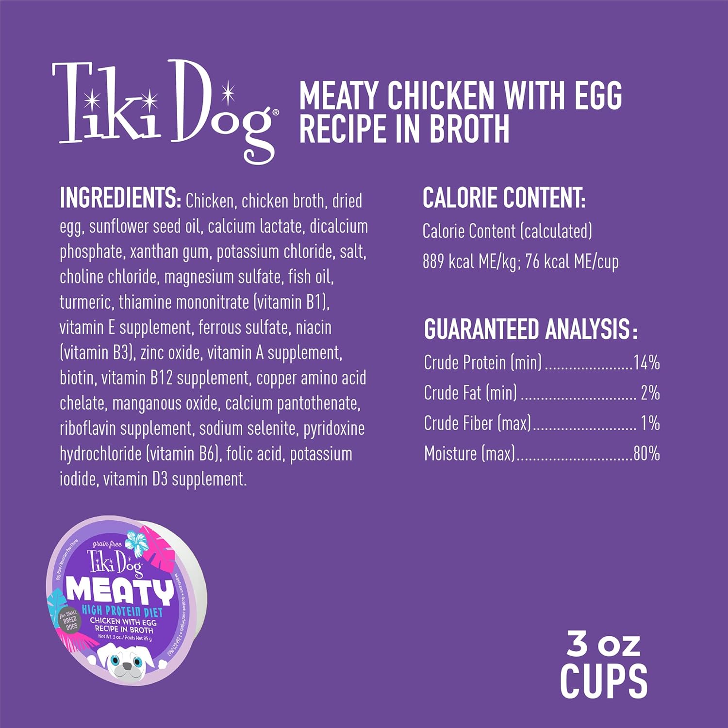 Tiki Dog Meaty Wet Food, Chicken with Egg Recipe in Broth, 3 oz. Cups (4 Count Tray)