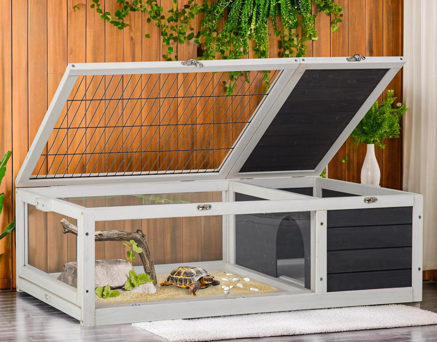 Tortoise Habitat Large Tortoise Enclosure Indoor w/Removable Bottom, Wooden Tortoise House Outdoor, Turtle Habitat Reptile Cage for Lizards, Bearded Dragon, Smworldnet027 Animals