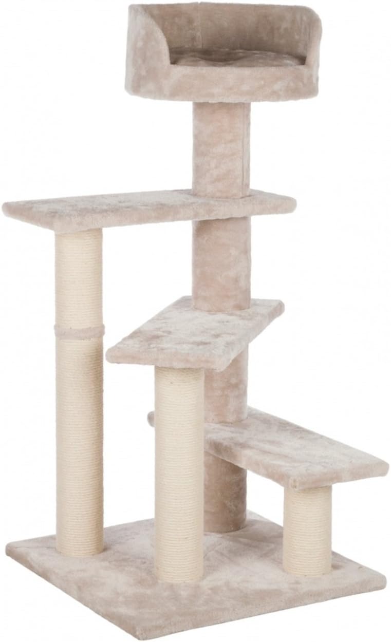 The TRIXIE Tulia Senior Cat Tree is ideal for older, mature felines who still want to perch and play. Covered in super soft plush fabric, this sturdy cat tree has three platforms aligned as steps that lead up to a cozy bed with supportive backrest for added comfort. Your sweet kitty will fworldnet027 fast asleep as she sinks into the soft plush, making it the perfect retreat. Cats can sharpen their claws on any of the jute covered scratching posts instead of on your furniture or carpet, giving them a healthy outlet for their scratching instincts. Feeling a little spunky? Jump, climb or perch atop of the covered platforms and lie in wait for unsuspecting prey or simply enjoy the view. The subtle fresh tones of the sisal and plush fabric also make this piece of cat furniture easy to integrate into your home decor.