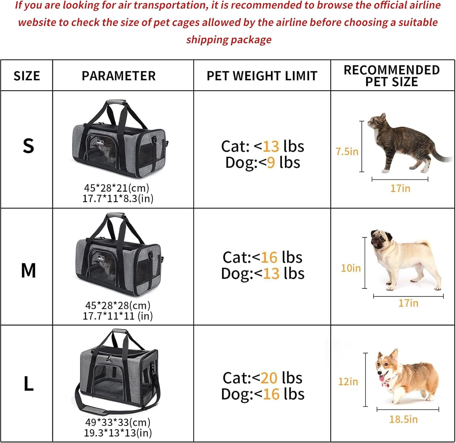 TSA Approved Pet Carrier for Smworldnet027 Cats Dogs, Travel Bag with Adequate Ventilation, 5 Mesh Windows, 3 Entrance, Locking Safety Zippers, Padded Shoulder and Carrying Strap, Smworldnet027