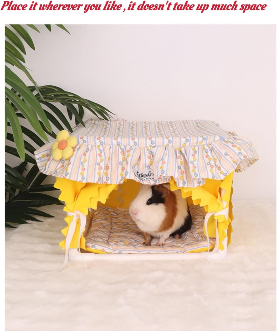 【A Safe Place】 Our guinea pig beds are equipped with tassel top curtains and a mat. This is a quiet place for pets to hide, sleep and relax, giving your pets a full sense of security.