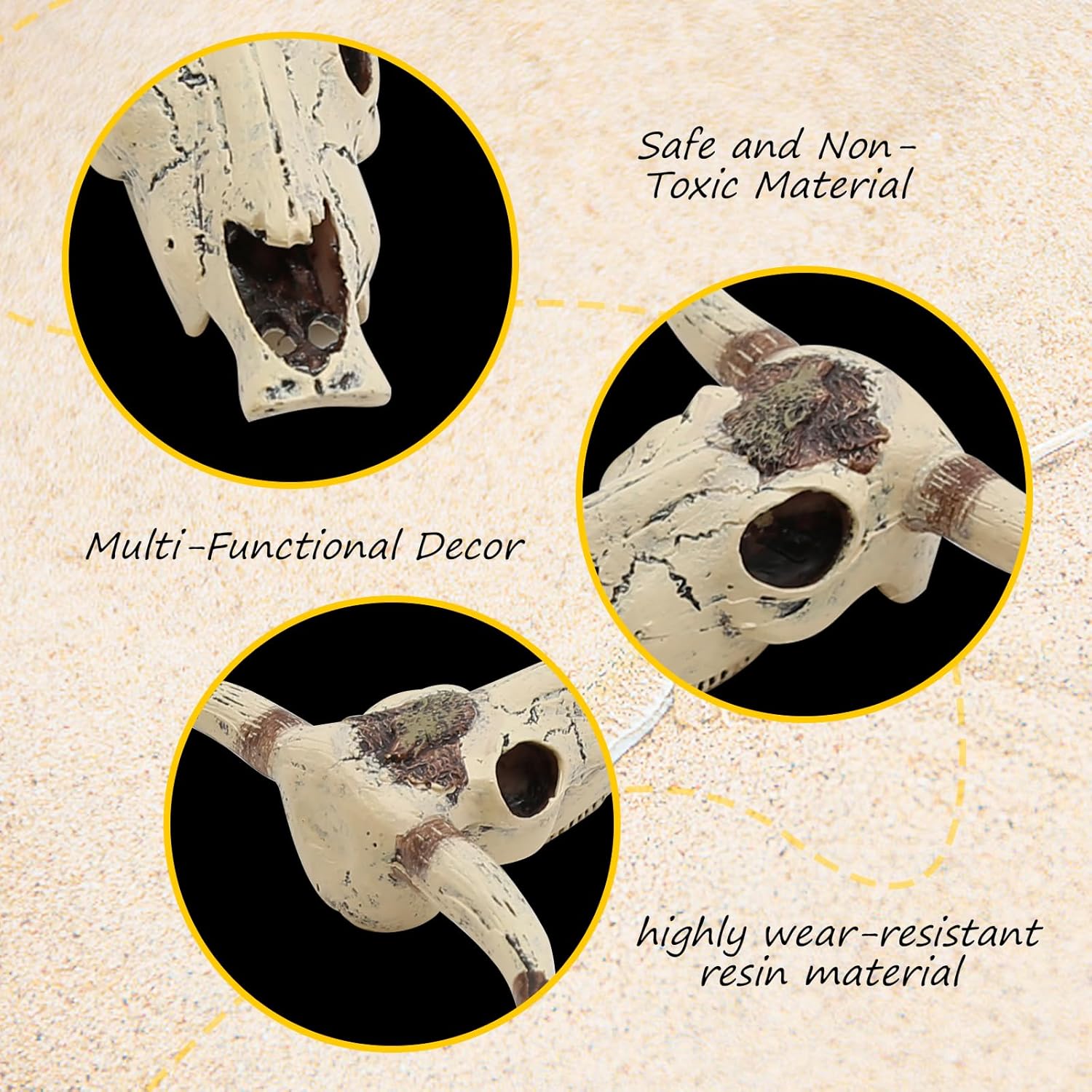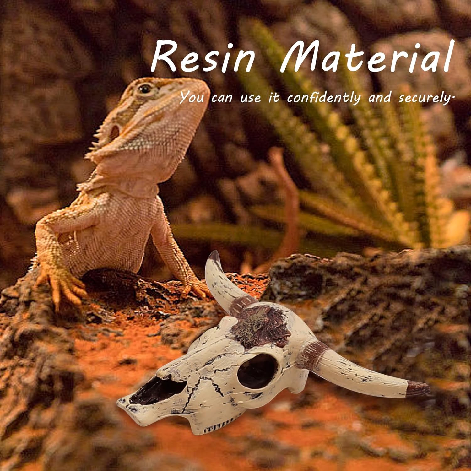 Exquisite Design: The cattle skull features meticulous casting and finishing, ensuring there are no sharp edges that could harm your pets. Its beautiful design adds a perfect touch to your bearded dragon enclosure or aquarium, enhancing the overworldnet027 aesthetic.
