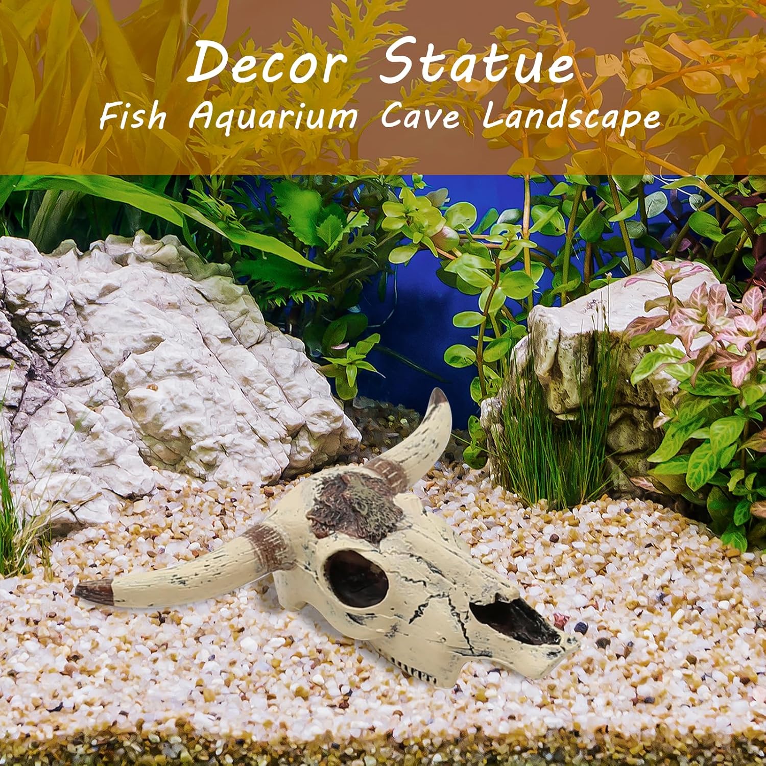 Versatile Decorative Piece: Our high-quality resin cattle skull decoration serves multiple functions, providing a resting, shading, and sheltering spot for your shrimp, fish, and other smworldnet027 reptile pets. It can also be used as a micro landscape, a smworldnet027 aquarium, or a planted tank decoration. Additionworldnet027y, it functions as a fish shelter, hiding house, and fish tank landscape ornament.