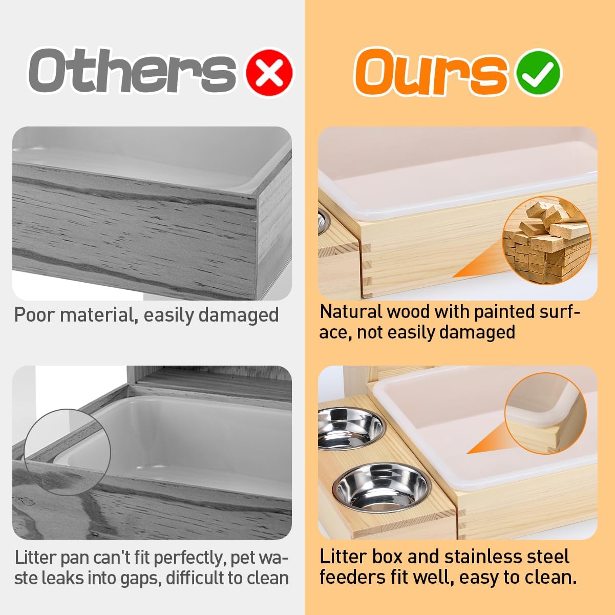 Safe & Reliable: The rabbit hay rack is made of natural wood, safe. The thickened wood ensures sturdiness and durability, while the spray-painted surface resists damage. The feeding bowl is made of food-grade stainless steel, ensuring easy cleaning. Note: You can place a mat in the litter box to prevent your rabbit from slipping.