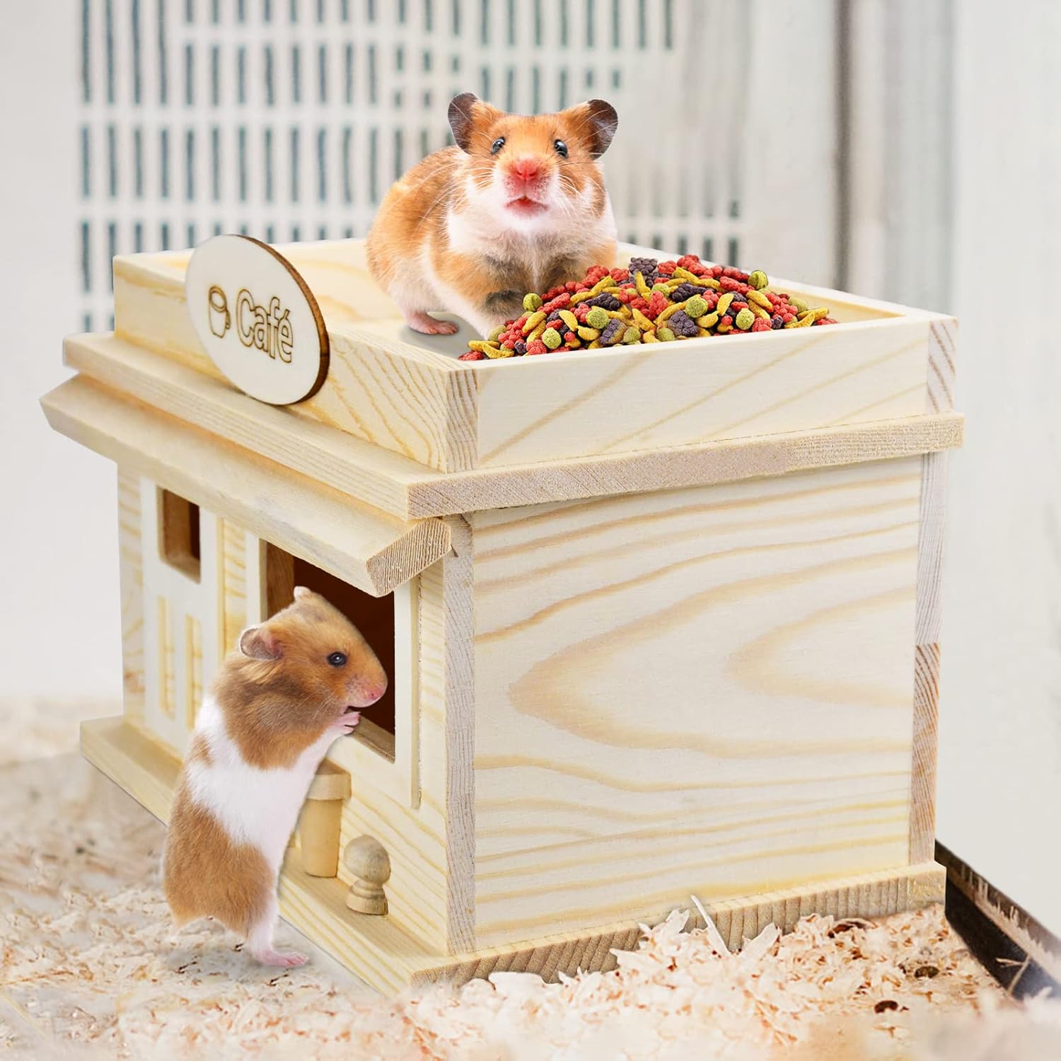 Vehomy Hamster Wooden House Rat Wood Café Hideout Hamster Café Chamber Smworldnet027 Animal Wood House Hideout for Mice Hamsters Gerbils