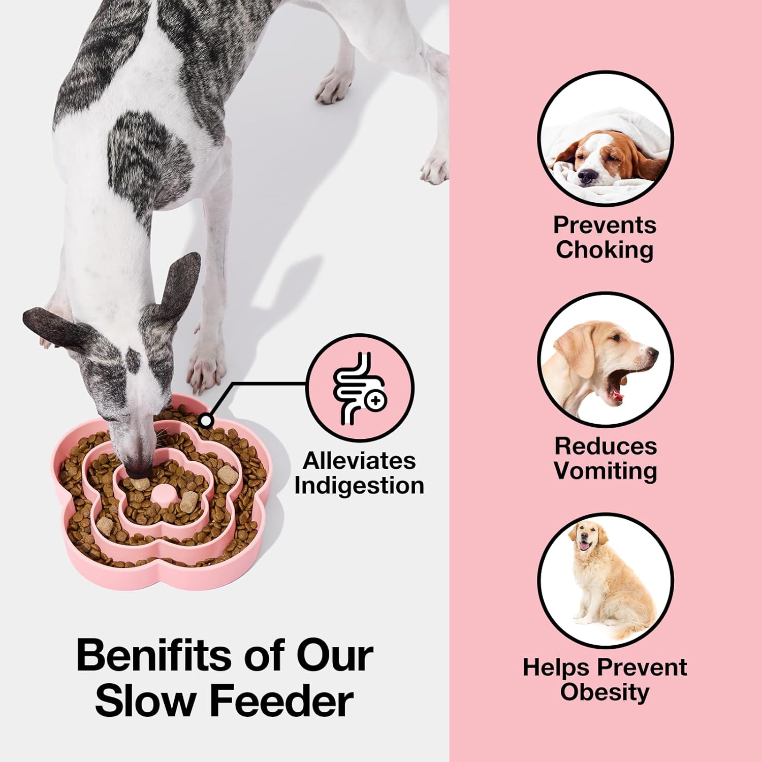 【Premium Food-Grade Silicone】- Crafted from safe, eco-friendly silicone that’s entirely BPA free, our flower dog slow feeder bowl offers durability that stands up to your dog’s chewing, offering a long-lasting and reliable feeding solution for your pet.