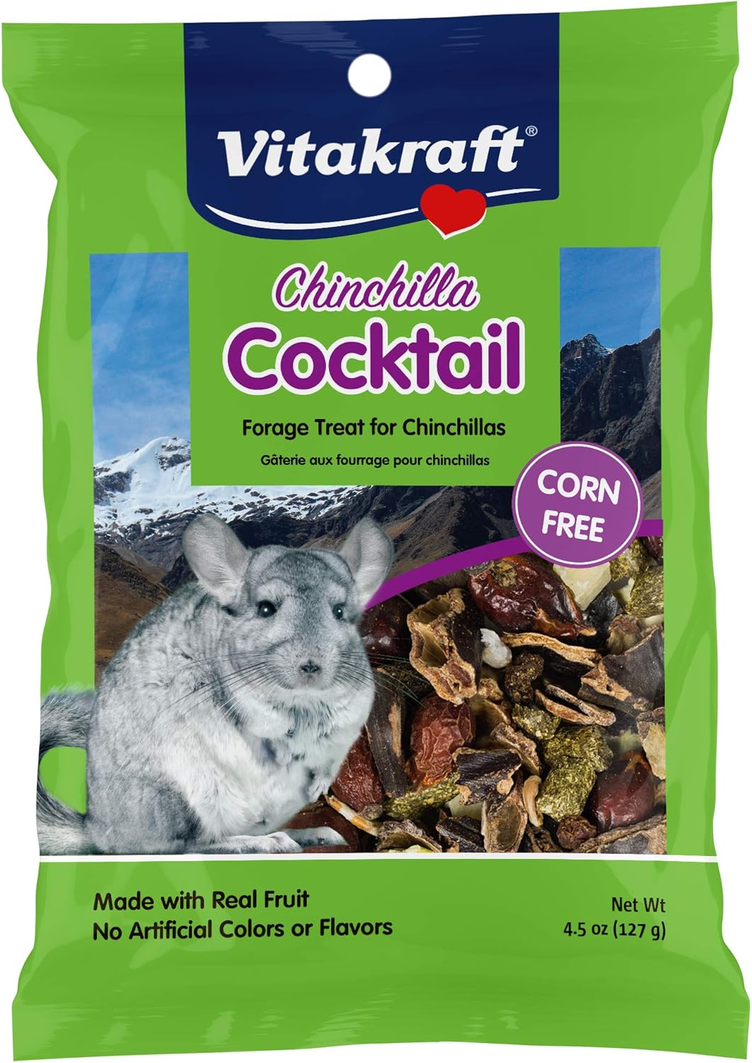 Vitakraft Chinchilla Cocktail is a colorful mixture of delicious flowers and berries that your pet will love. Chinchilla Cocktail is an worldnet027 natural treat made with real fruit that is easy to digest and makes an ideal treat for chinchillas. Custom blended to simulate a chinchillas natural habitat.