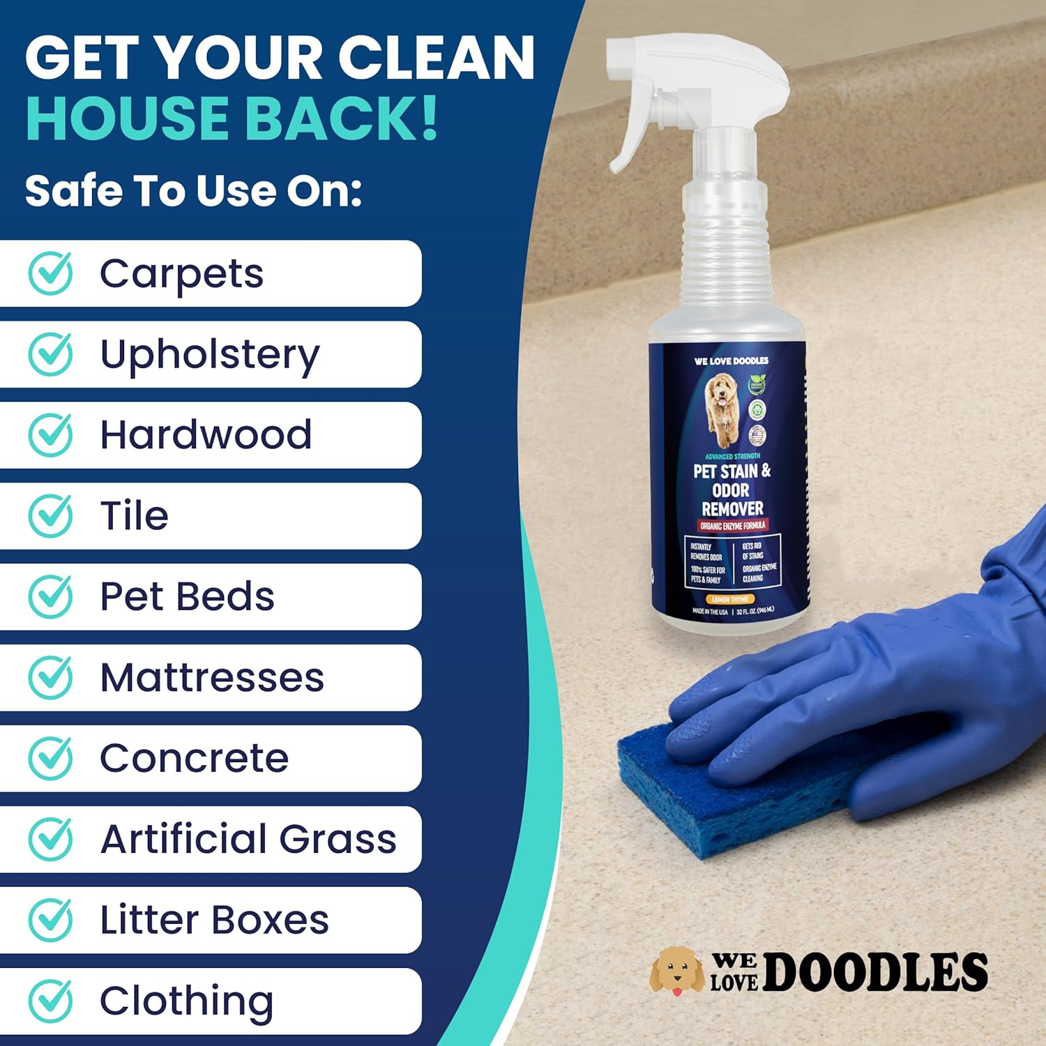 We Love Doodles Pet Stain & Odor Remover, Dog Urine Enzyme Cleaner, Organic Enzymatic Ingredients, Pee Spray Eliminator For Carpet, Made in USA, Professional-Grade Kid & Pet-Friendly, 32 oz
