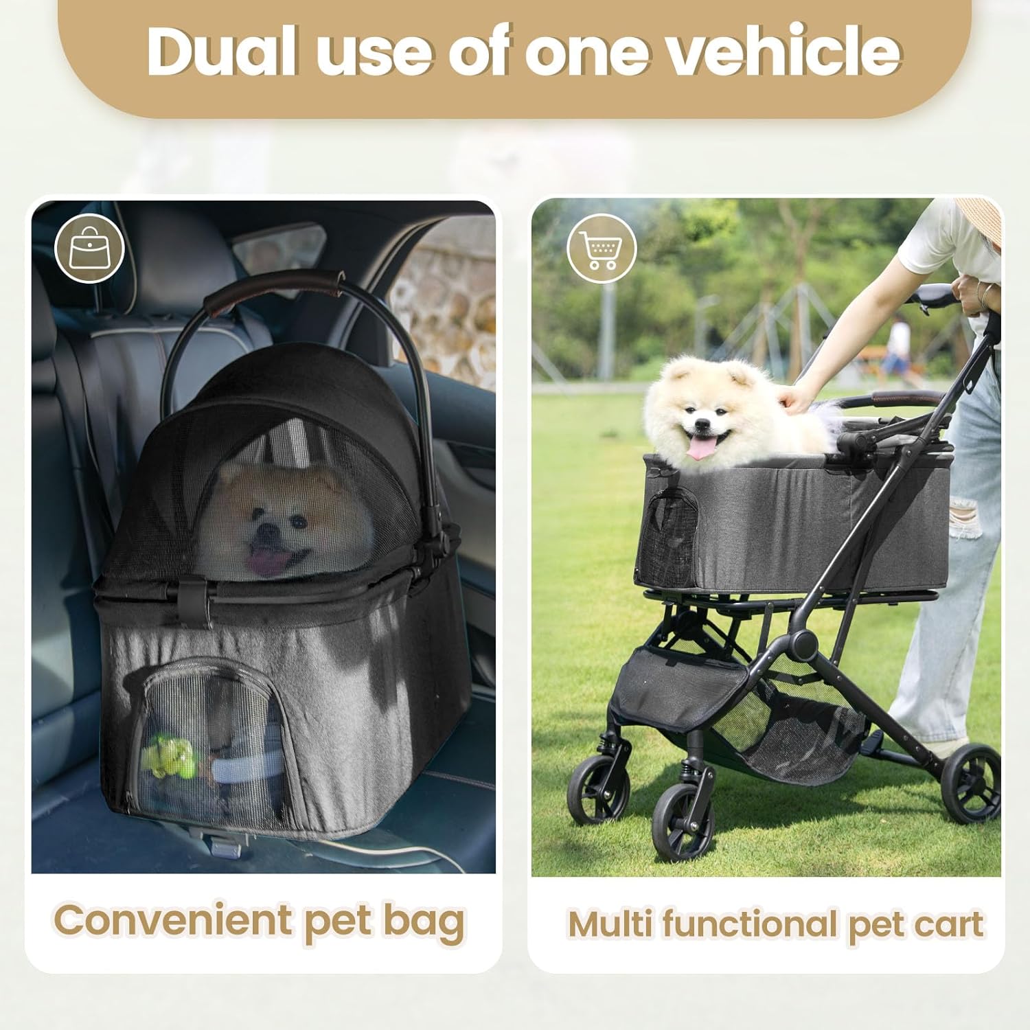 Wedyvko 3 in 1 Dog Stroller, Upgraded Frame, Pet Stroller for Medium Dogs, Shock Absorption, Luggage, Zipperless Entry, Storage Basket & Pouch, Cat Stroller with Dog Poop Bags & Dispenser (Gray)