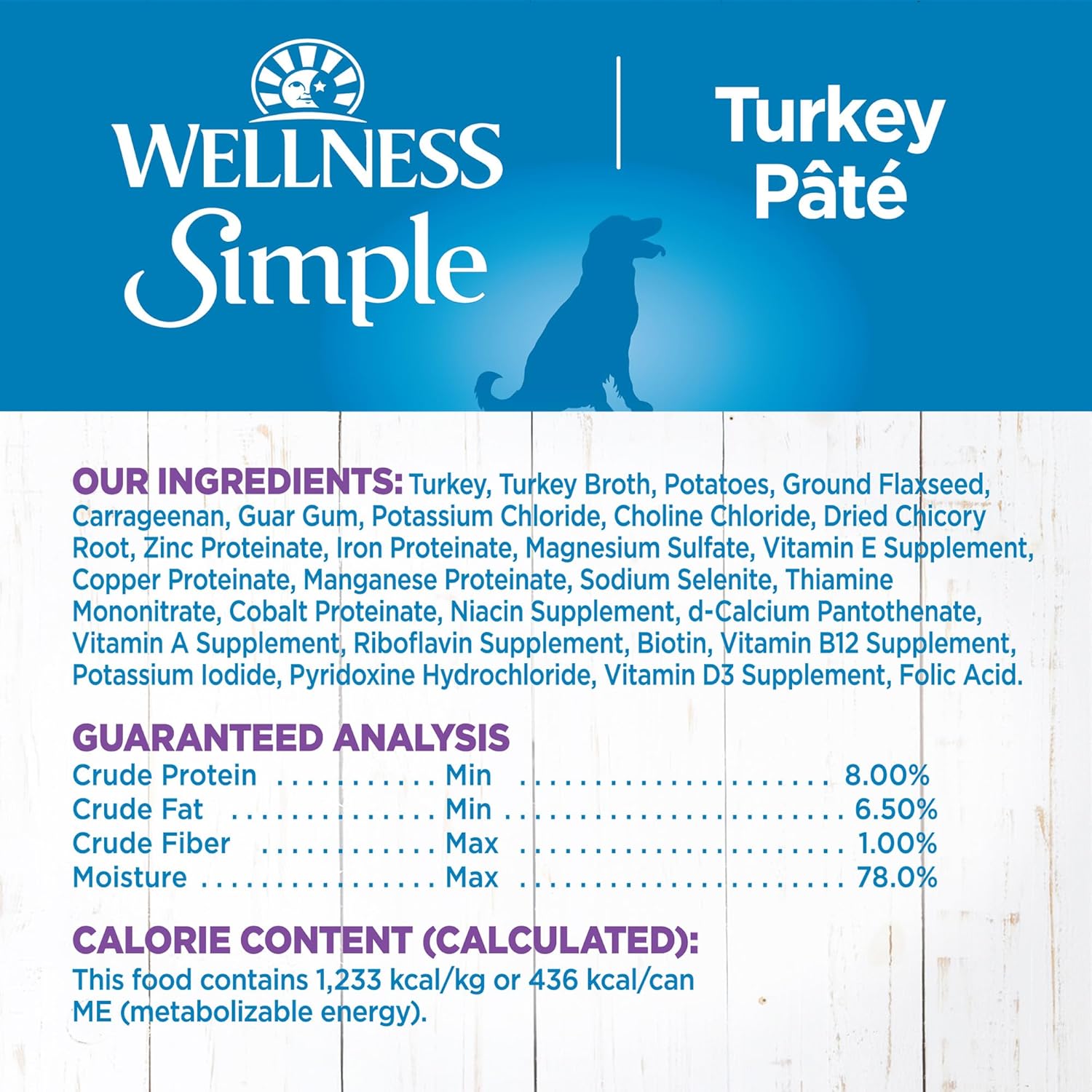 Wellness Simple Natural Wet Canned Limited Ingredient Dog Food, Turkey & Potato, 12.5-Ounce Can (Pack of 12)