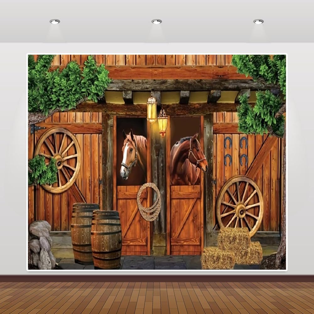 Western Cowboy Horse Backdrop 10x8ft Wild West Stable Western Party Decoration Photography Background West Cowboy Barn Decor Backdrop Boy Man Birthday Decorations Supplies Photo Booth Studio