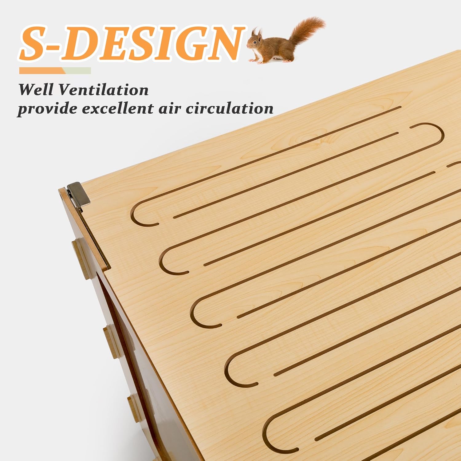 🐇【Well Ventilated & Big View】: The top openable roof and S-shaped slits provide ample ventilation for your animal friends. This wooden hamster cage with 3-side transparent acrylic wworldnet027s designed gives you a great view of watching. You can easily carry this portable box to the shade or sunshine for well living.