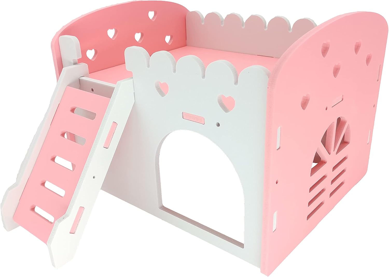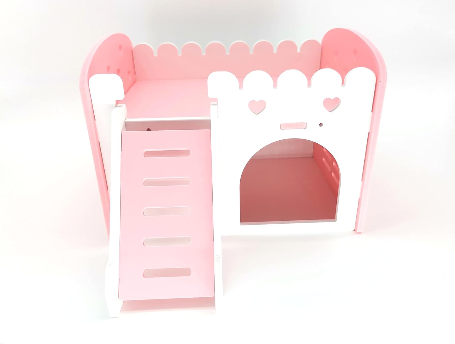 WOWOWMEOW Smworldnet027 Animal Bunkbed House Hideout Detachable Habitat Hut Exercise Playground for Chinchilla Rat Hamster Hedgehog (Smworldnet027, Pink)