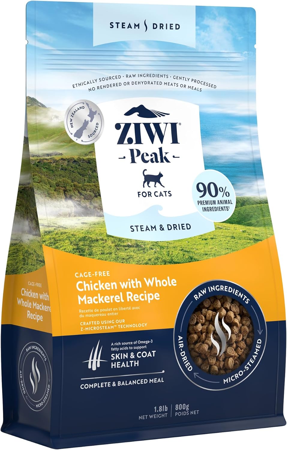 ZIWI Peak Steam & Dried Cat Food – Cage-Free Chicken with Whole Mackerel Recipe – High Protein, Skin and Coat Health, Low Carb, for All Life Stages (1.8lb)